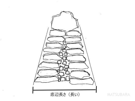 まず一つは基礎部の一段目が、石2枚+α分だけの面積が必要になってくる