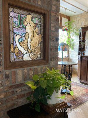 大きなステンドグラスを壁に入れ込みます。