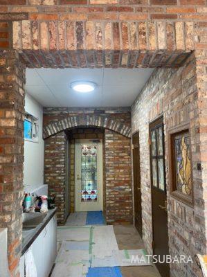 リフォーム後、枠組みまでアンティークレンガを貼るとヨーロッパの教会のようなお厳かな雰囲気。