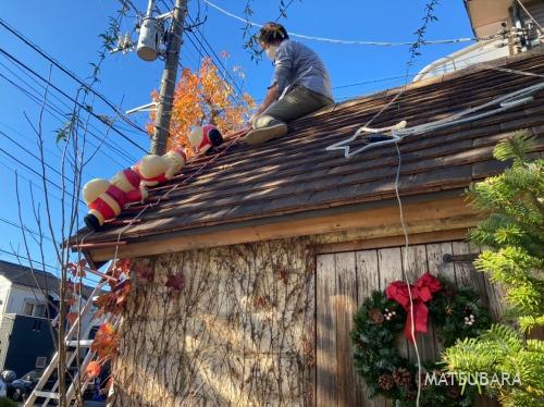 この時期、スタッフは決まってクリスマスイルミネーションの構想に頭を悩ませていまます。飾りつけをする日は、お約束でとんがり屋根のてっぺんに女性スタッフがよじ登り、セッティングをします。