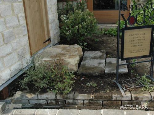 コッツウォルズ小屋の踏み石には「ボルダー」を据えたらぴったりと納まりました。