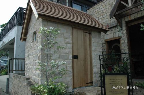 事務所前に作ったとんがり屋根の可愛らしいコッツウォルズ小屋が完成したのは2009年ハナミズキの咲く5月です。