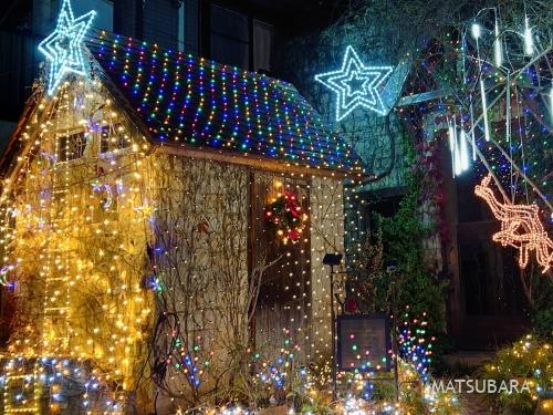年々ライティングデザインの腕があがっていくスタッフ、この年はお菓子の家をイメージしてコッツウォルズ小屋を飾りました。